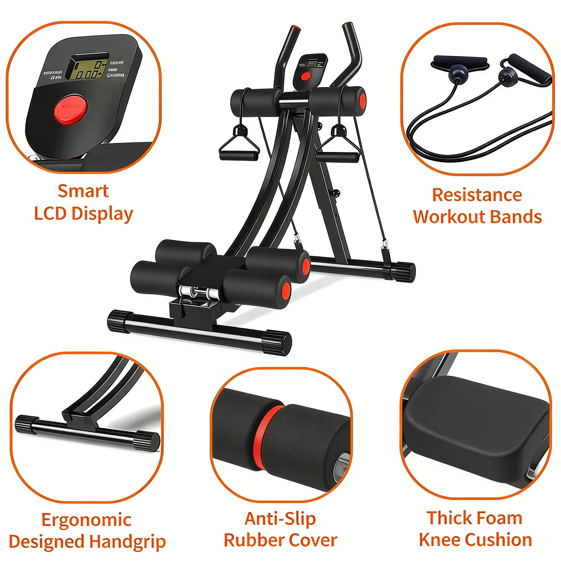 【LCD Display】 The smart LCD monitor displays calories burned, workout time, and repetitions, helping you track your progress.