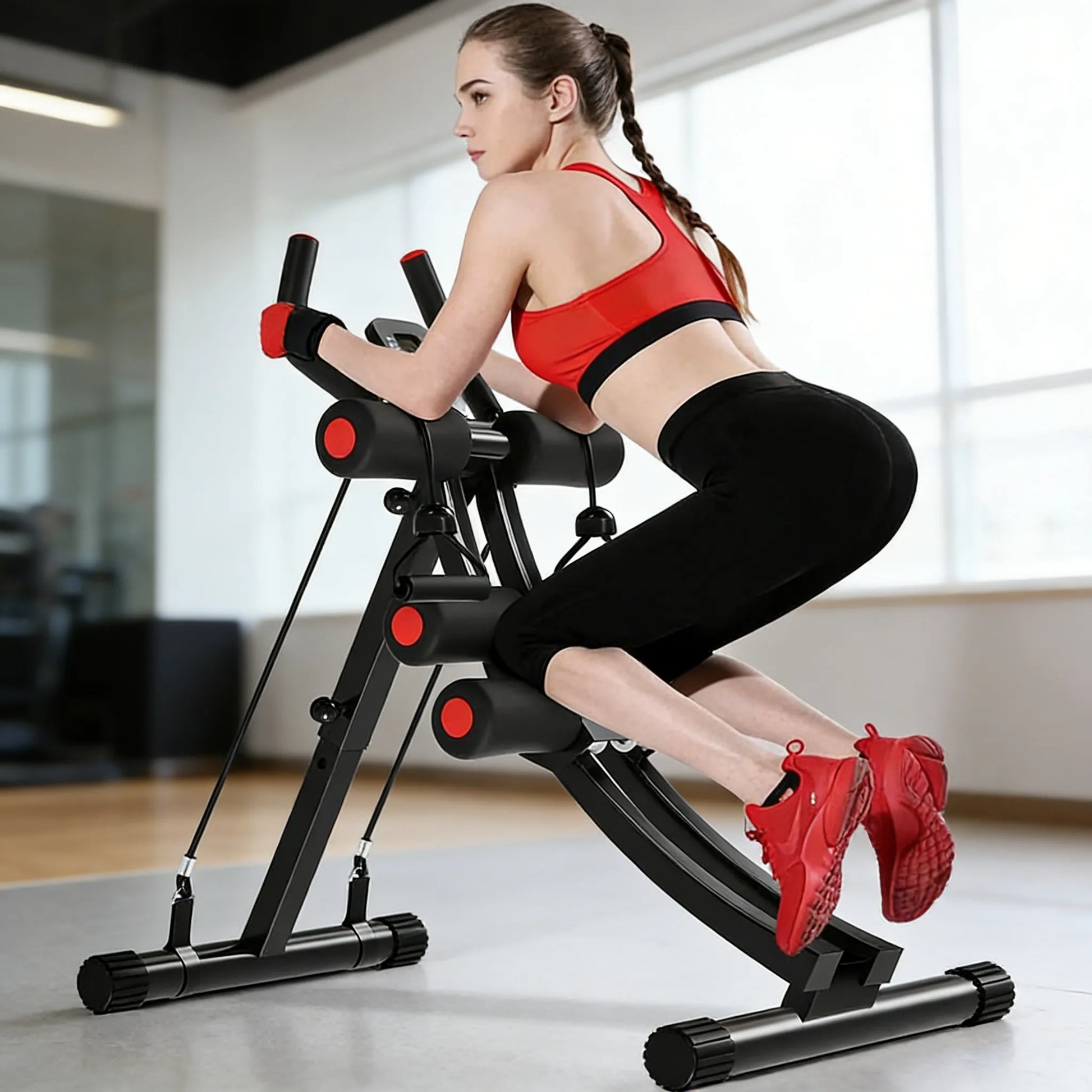 【Professional Ab/Core Machine】 The curved steel track design engages more muscle groups, taking your ab and core workouts to the next level.
