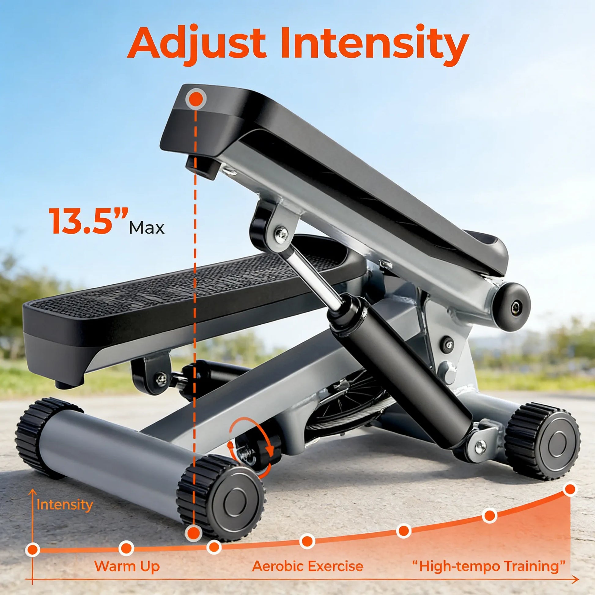 【Adjustable Intensity】 Easily adjust the workout intensity with the height adjustment knob, allowing you to switch between short, intense intervals and longer, steady strides, based on your workout needs.